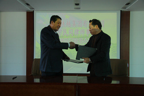 2015年1月27日上午,大连铁越集团有限公司聘请本所担任常年法律顾问协议在铁越集团会议室举行。本所首席律师王利民教授与铁越集团总经理白慧涛分别代表双方在《常年法律顾问聘用合同》上签字。签约仪式前,双方进行了座谈交流。王慧涛总经理和王利民首席律师分别介绍了铁越集团与本所的基本情况。