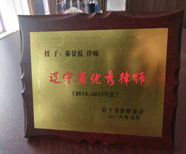 秦景霞主任律师荣获“辽宁省优秀律师”称号